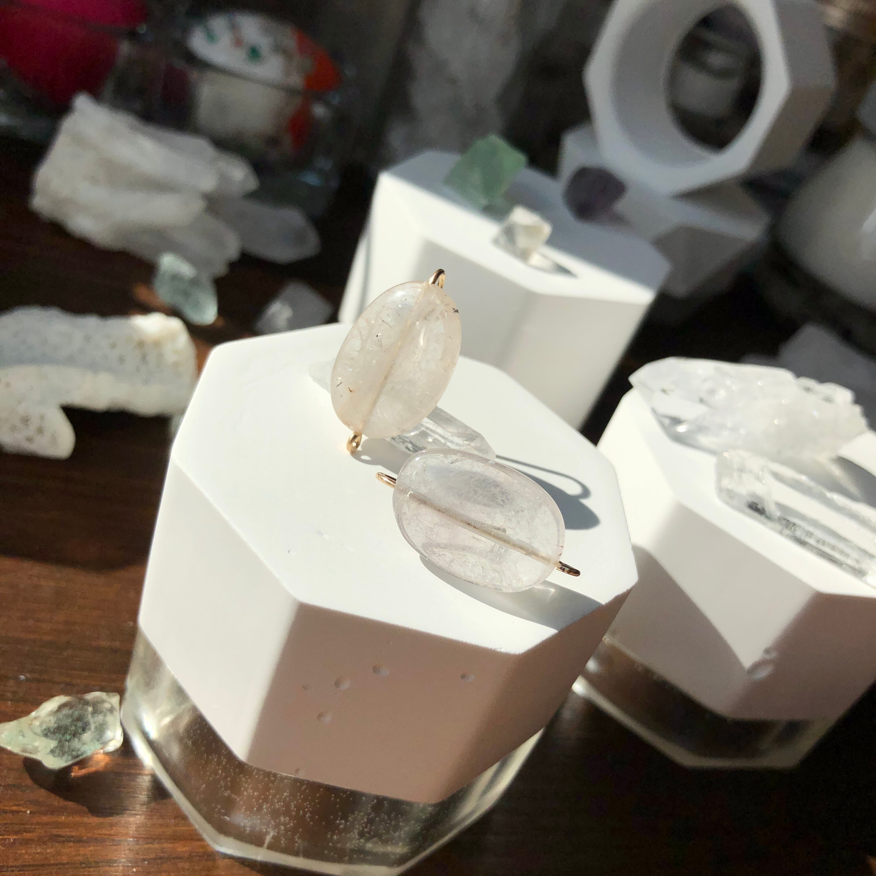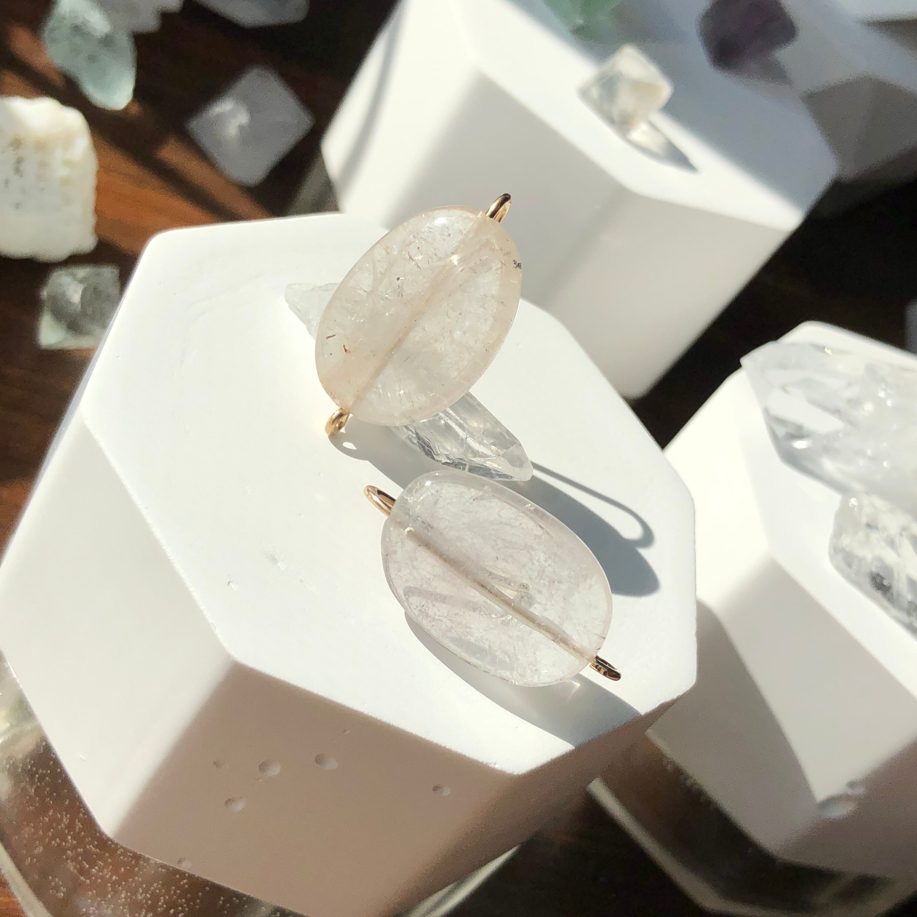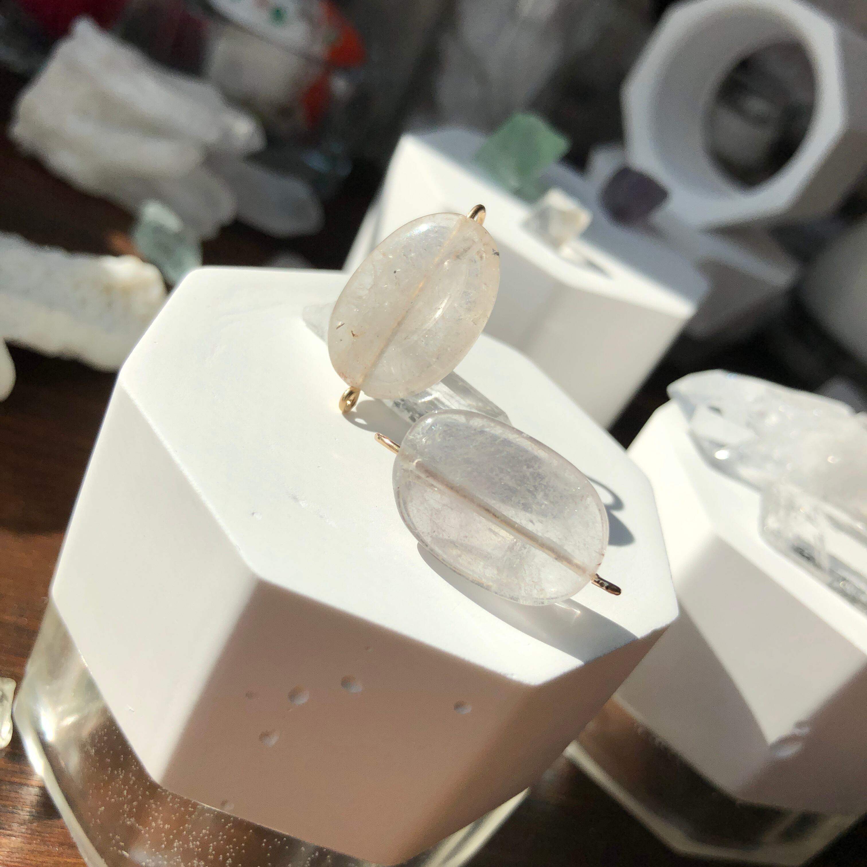 氷みたいな筋や模様のクォーツピアス。