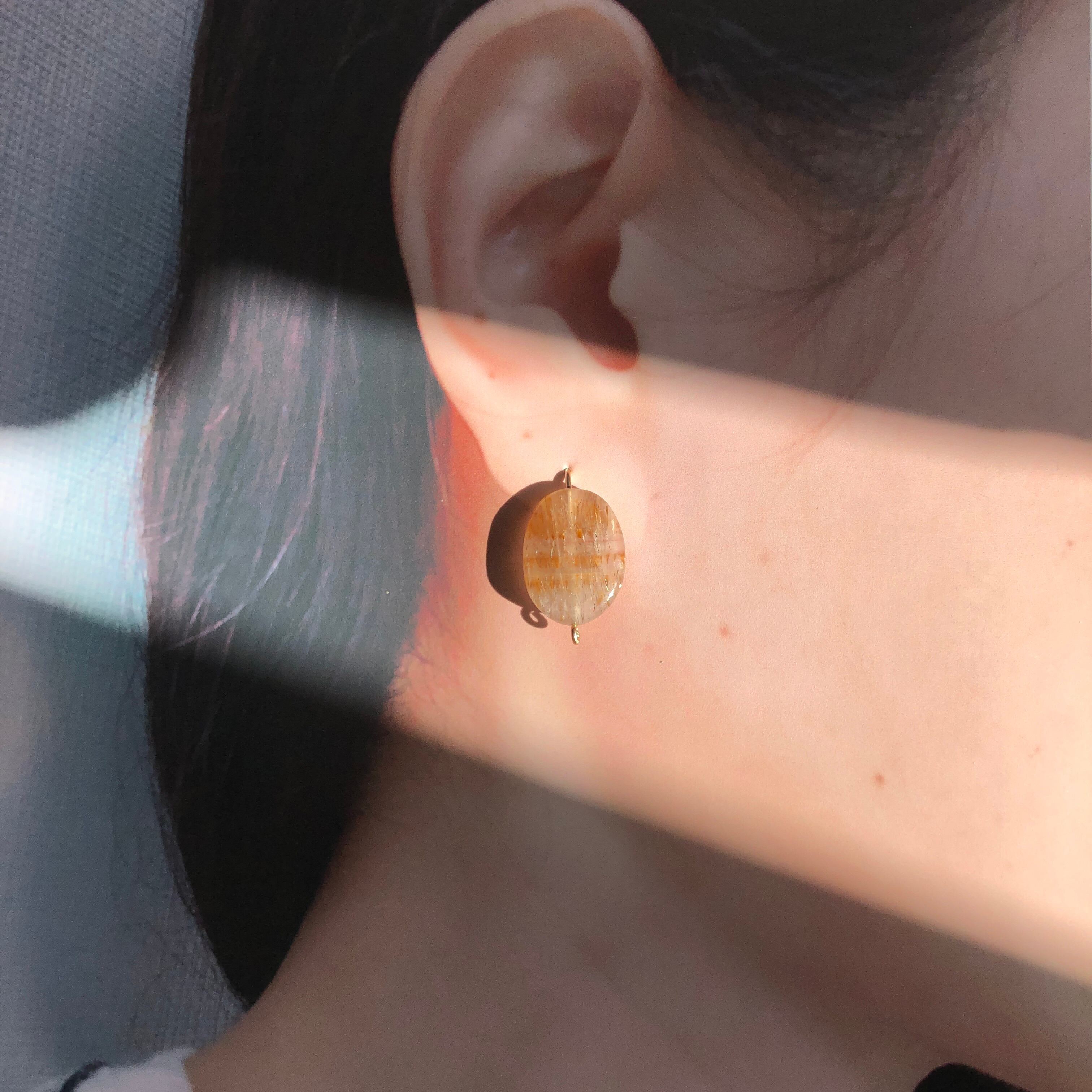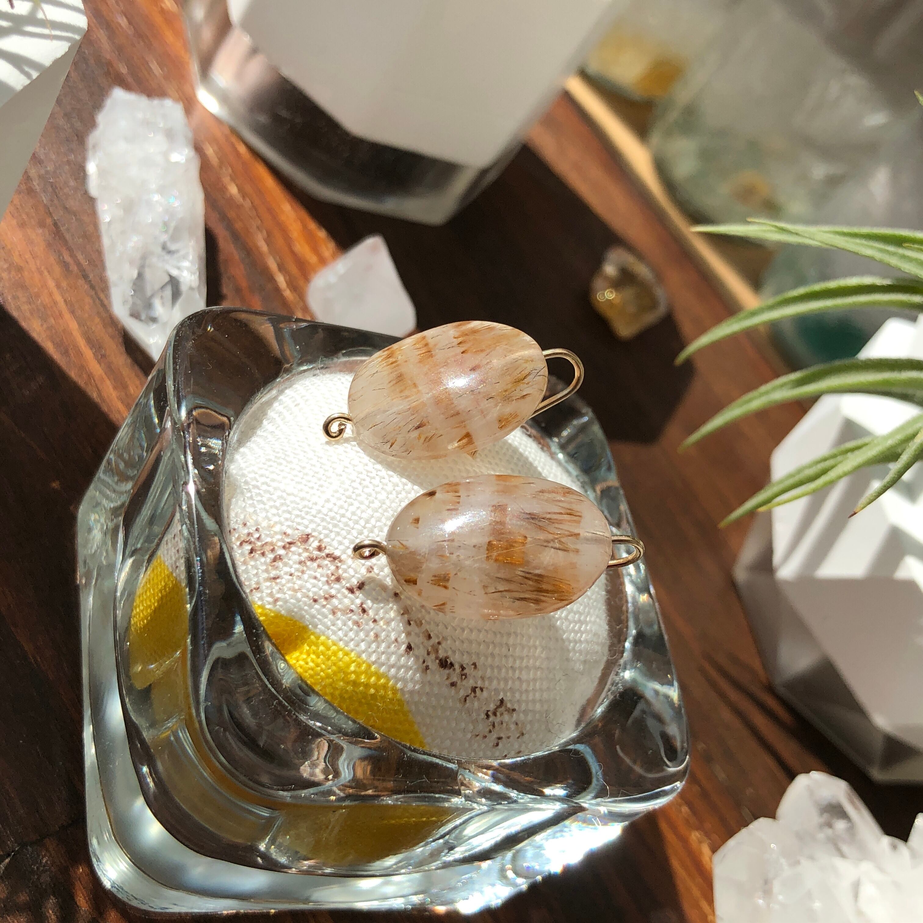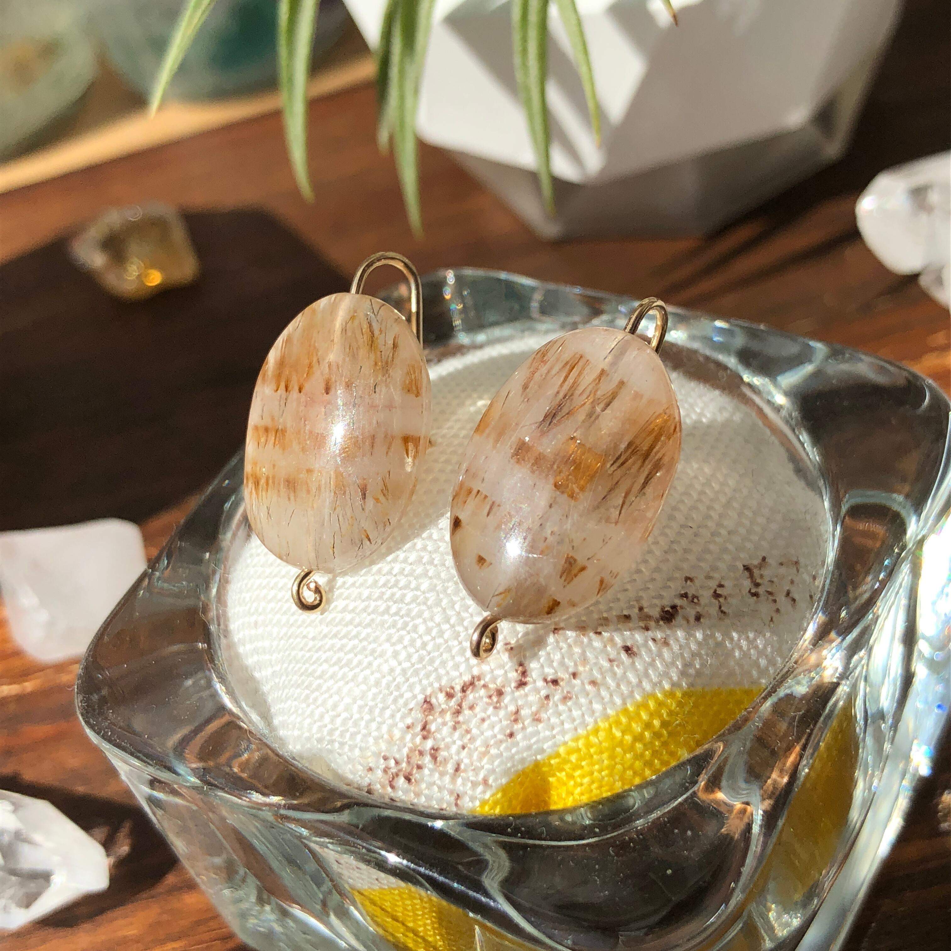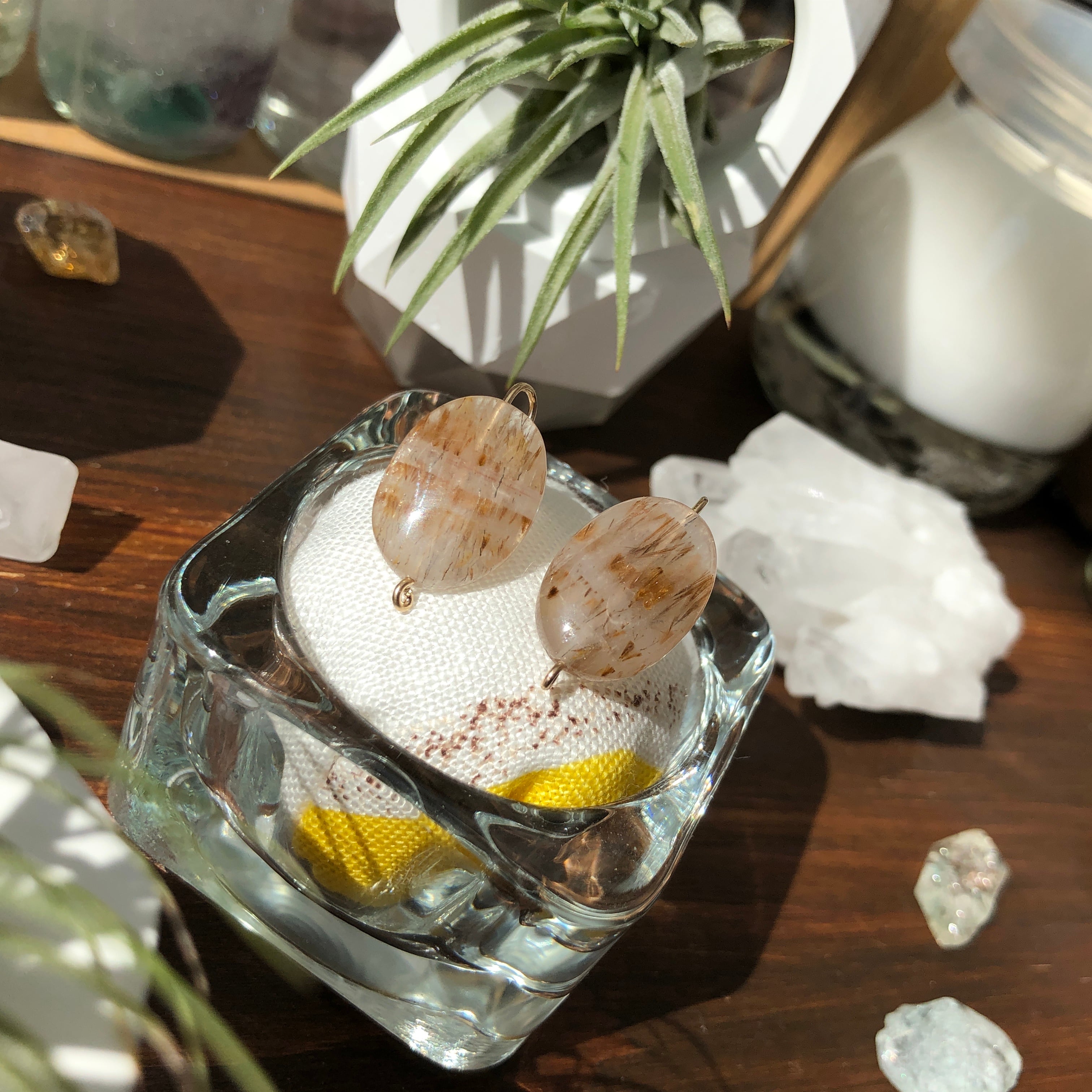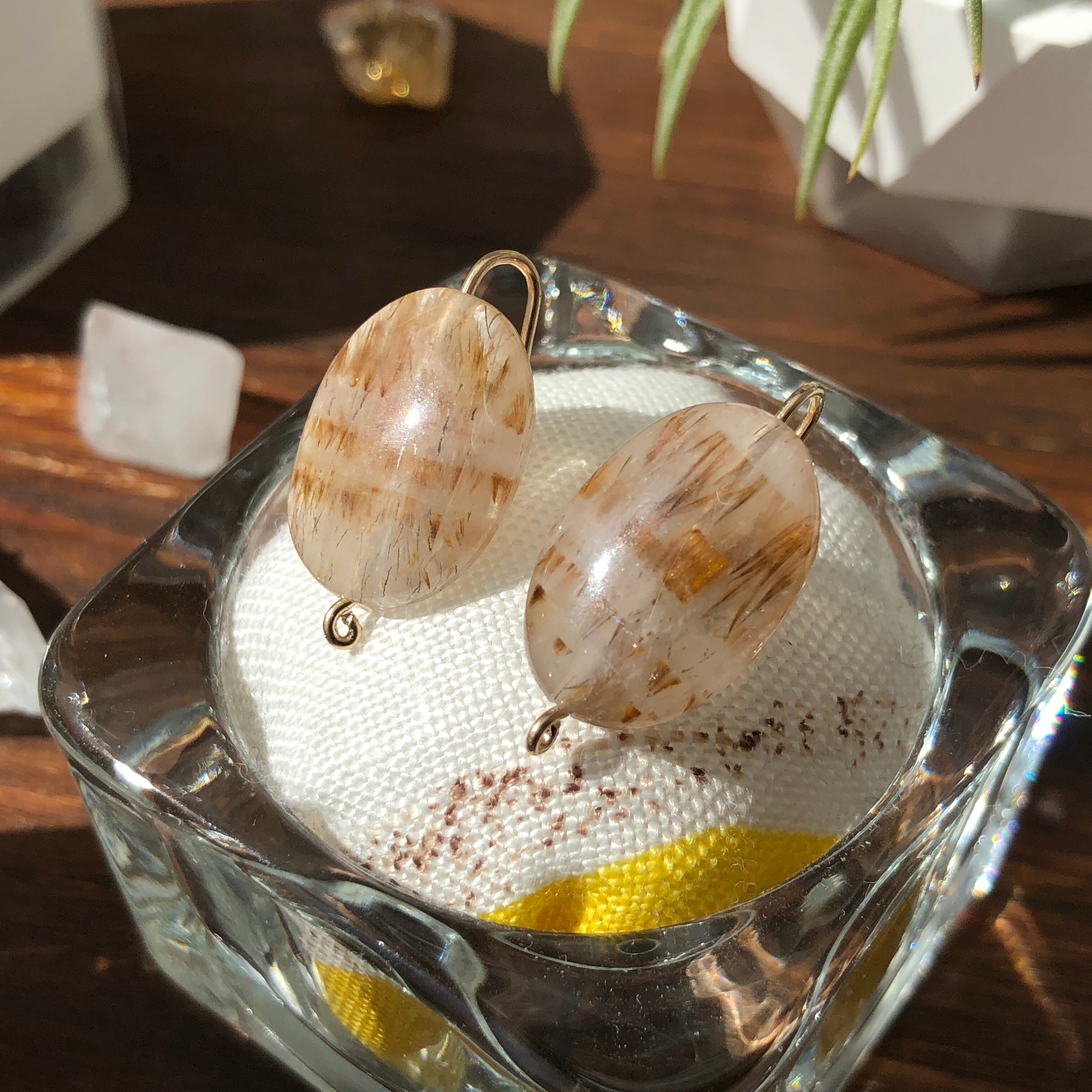 ヒョウ柄みたいなカコクセナイトが入った、クォーツピアス。