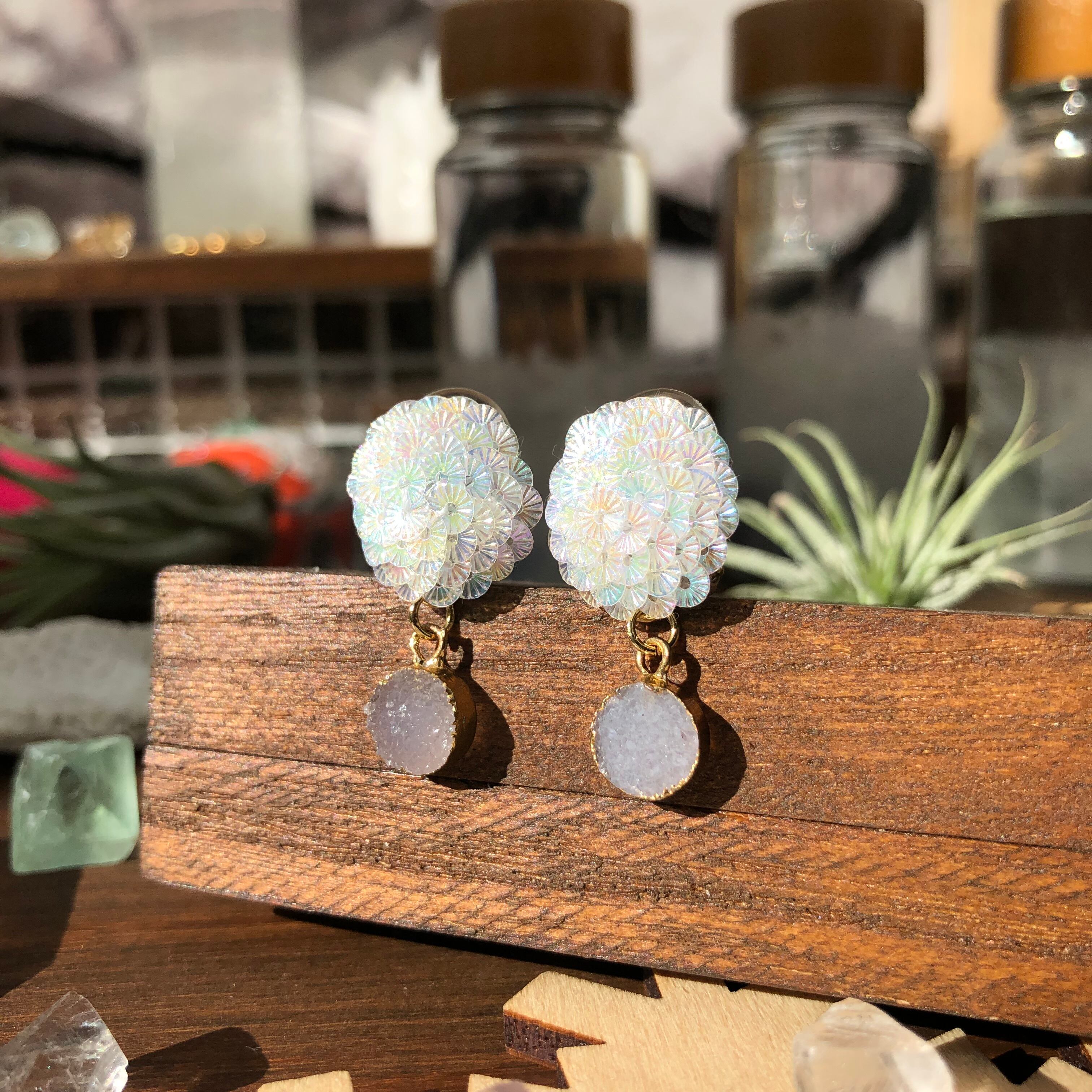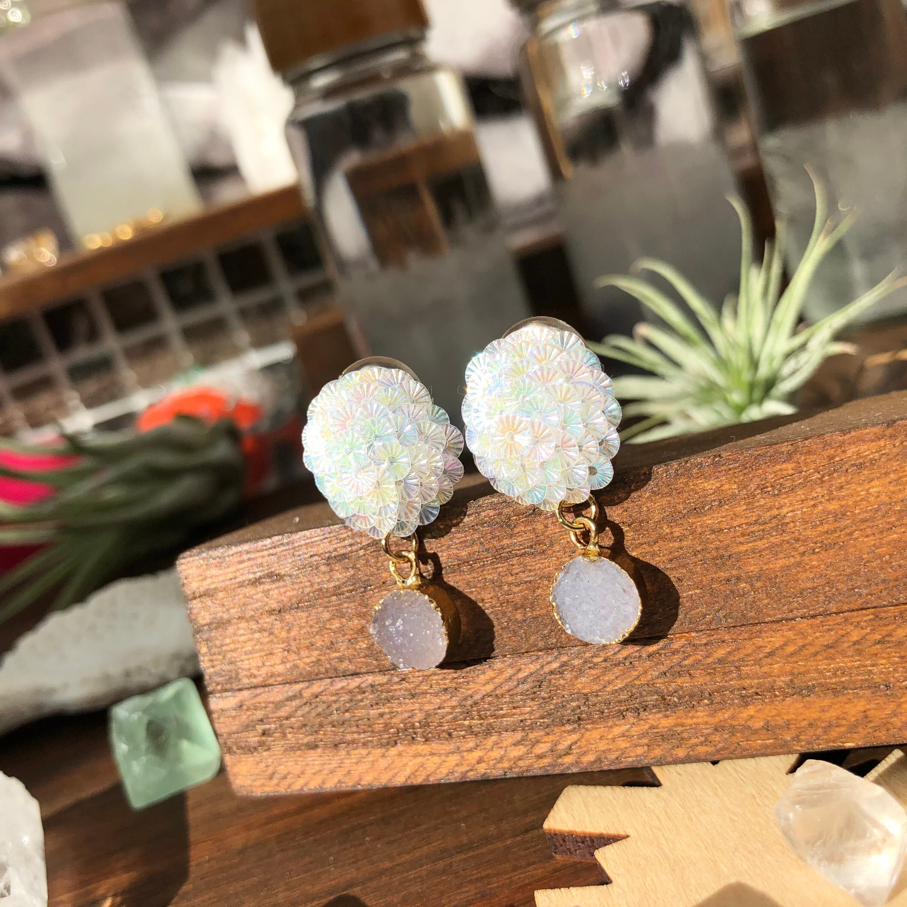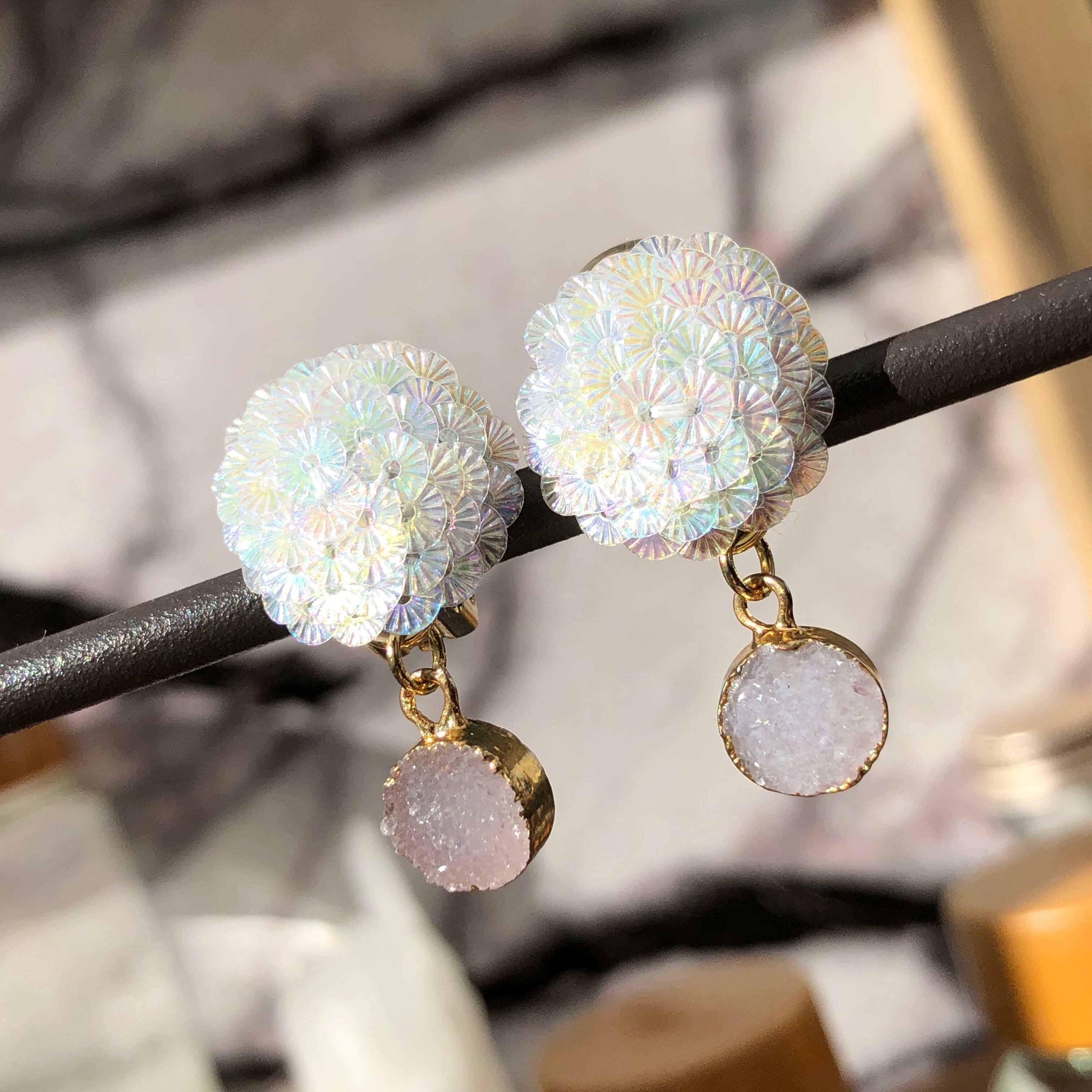 スパンコール刺繍にドゥルージーをプラスしたイヤリング。