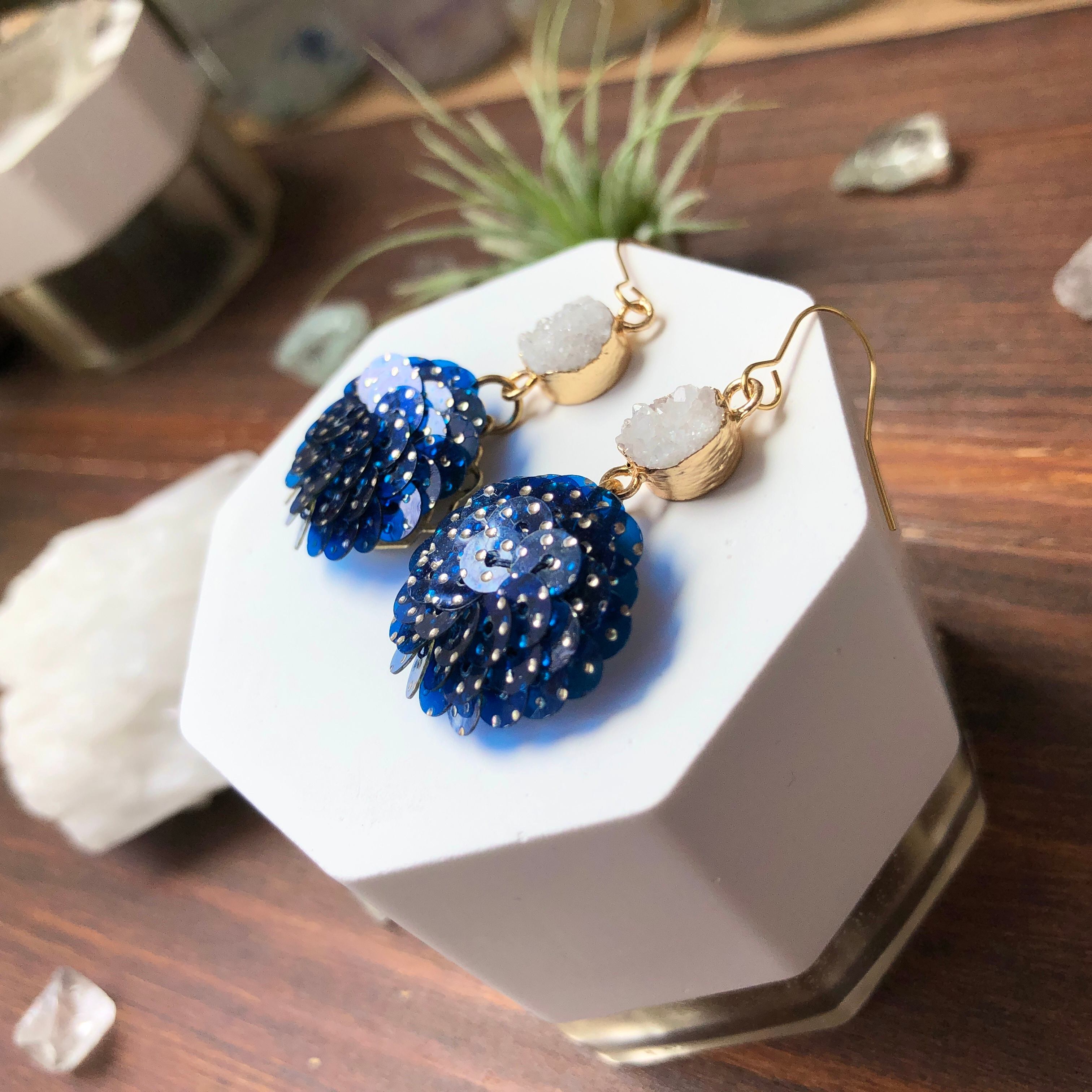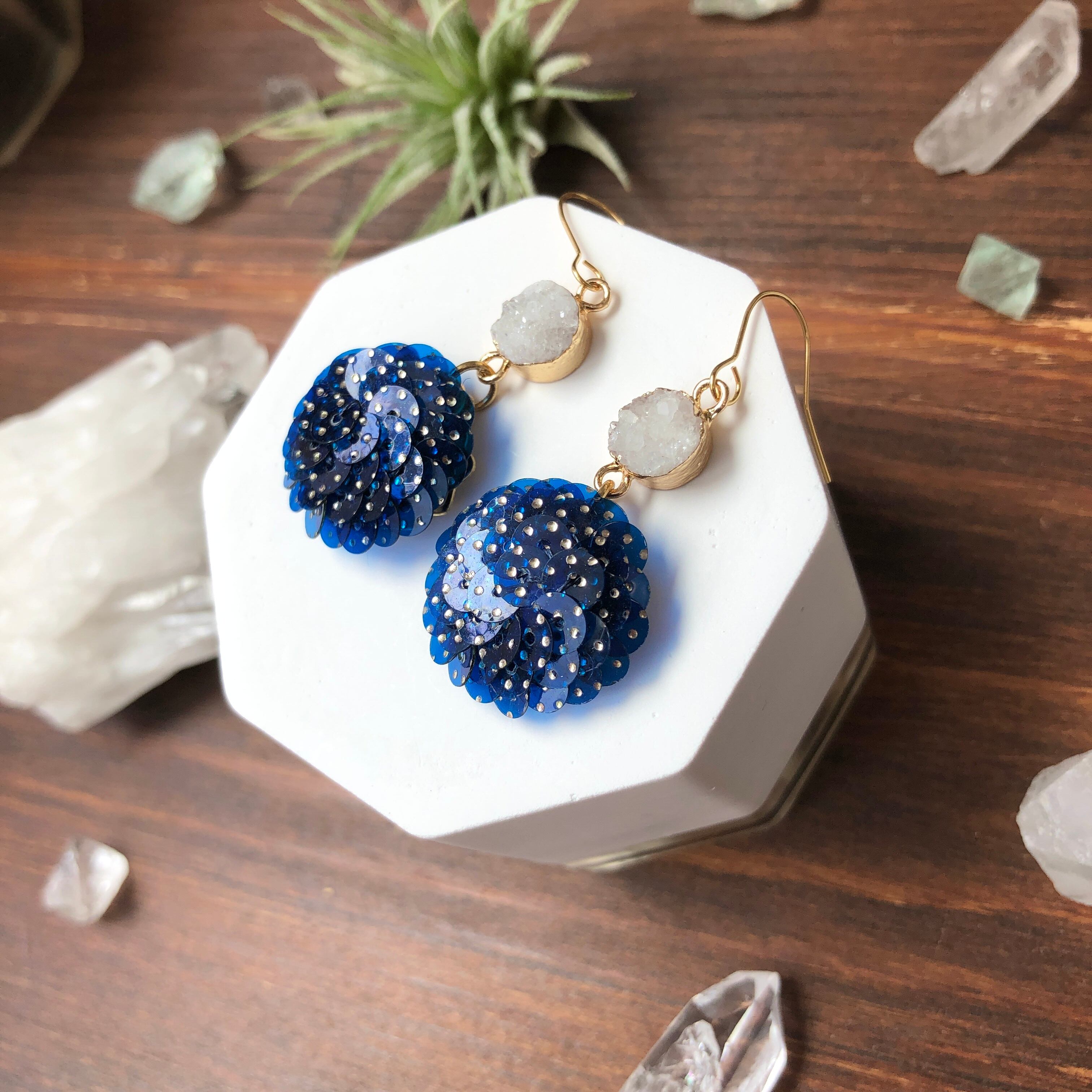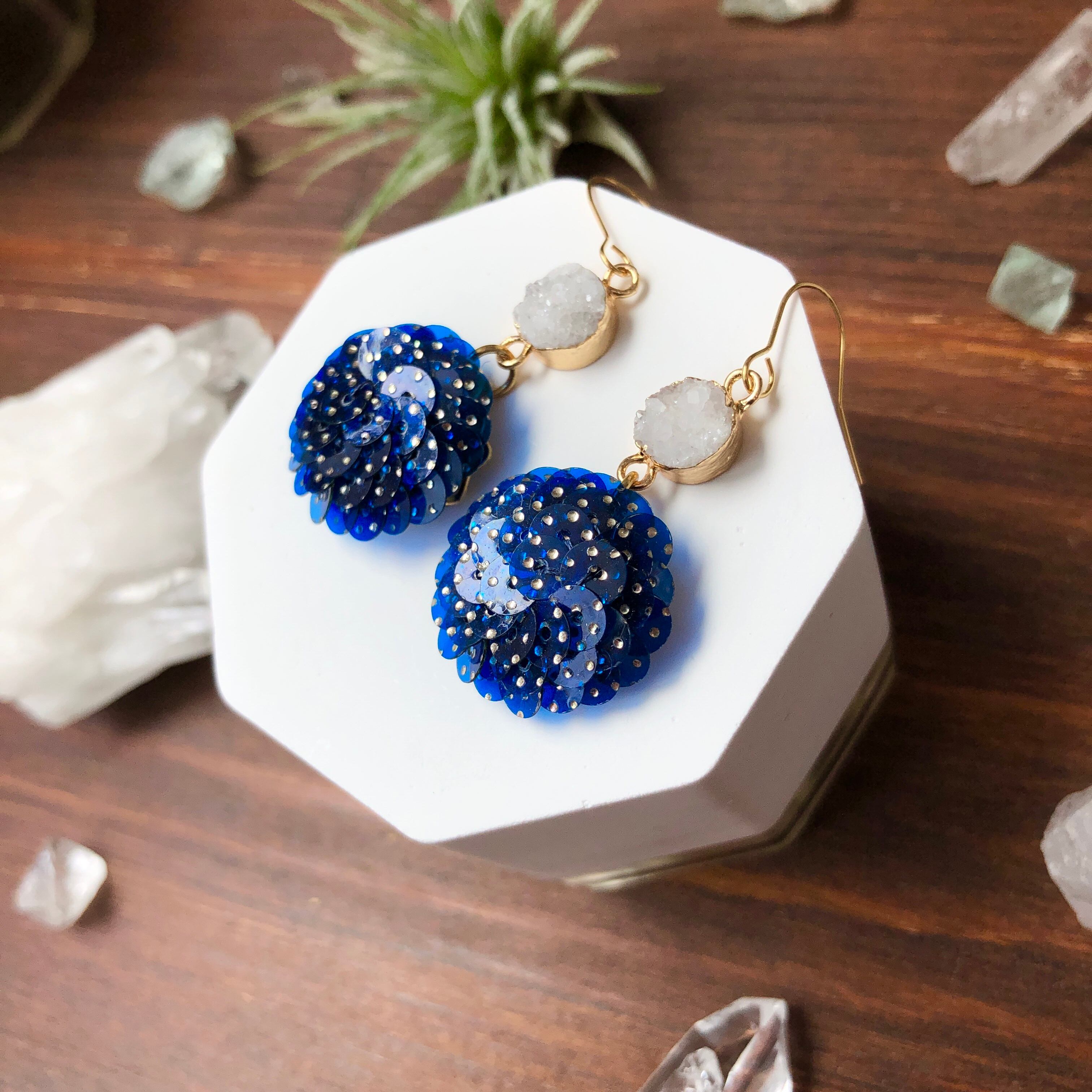 ドット柄入りのスパンコールをシンプルに刺繍したピアス。