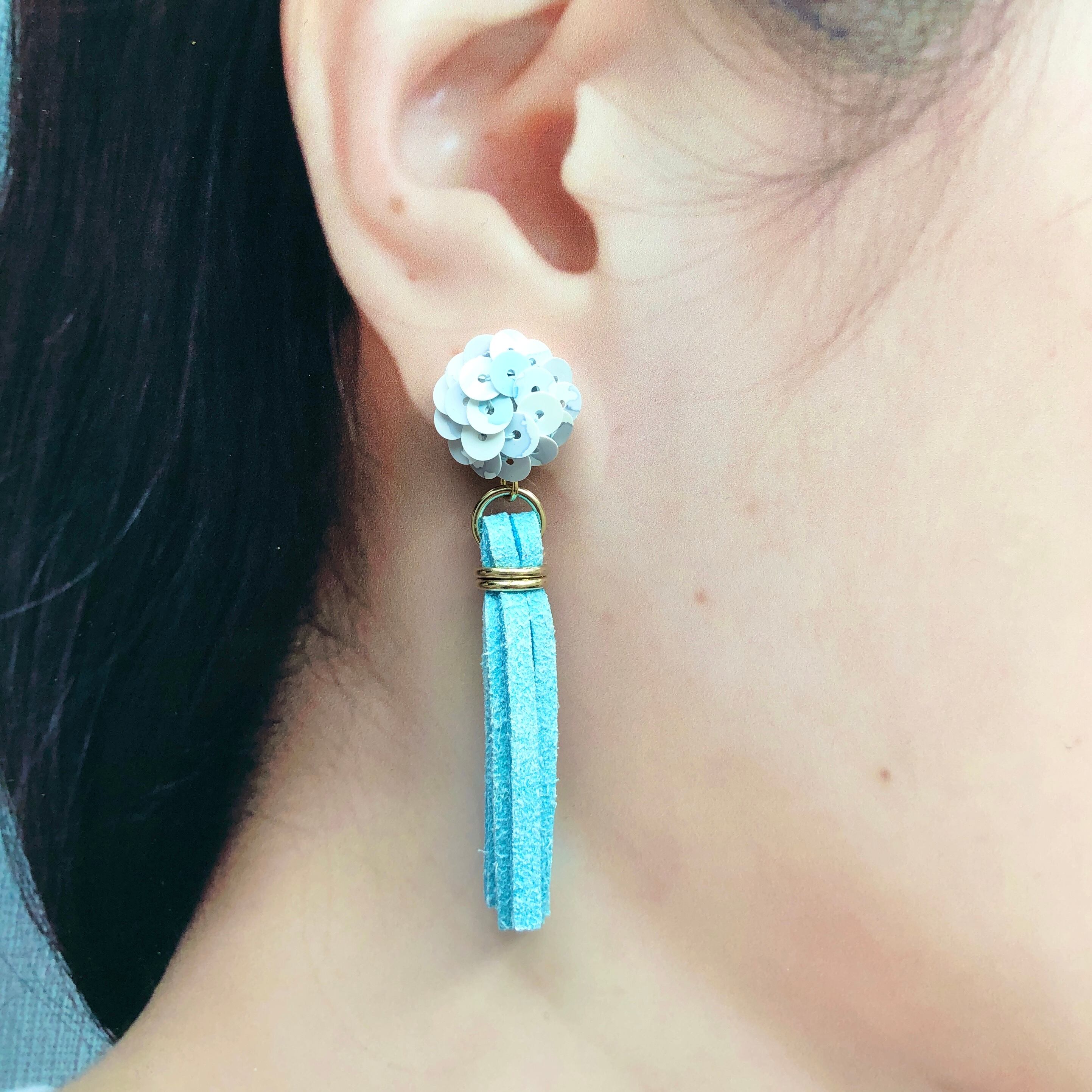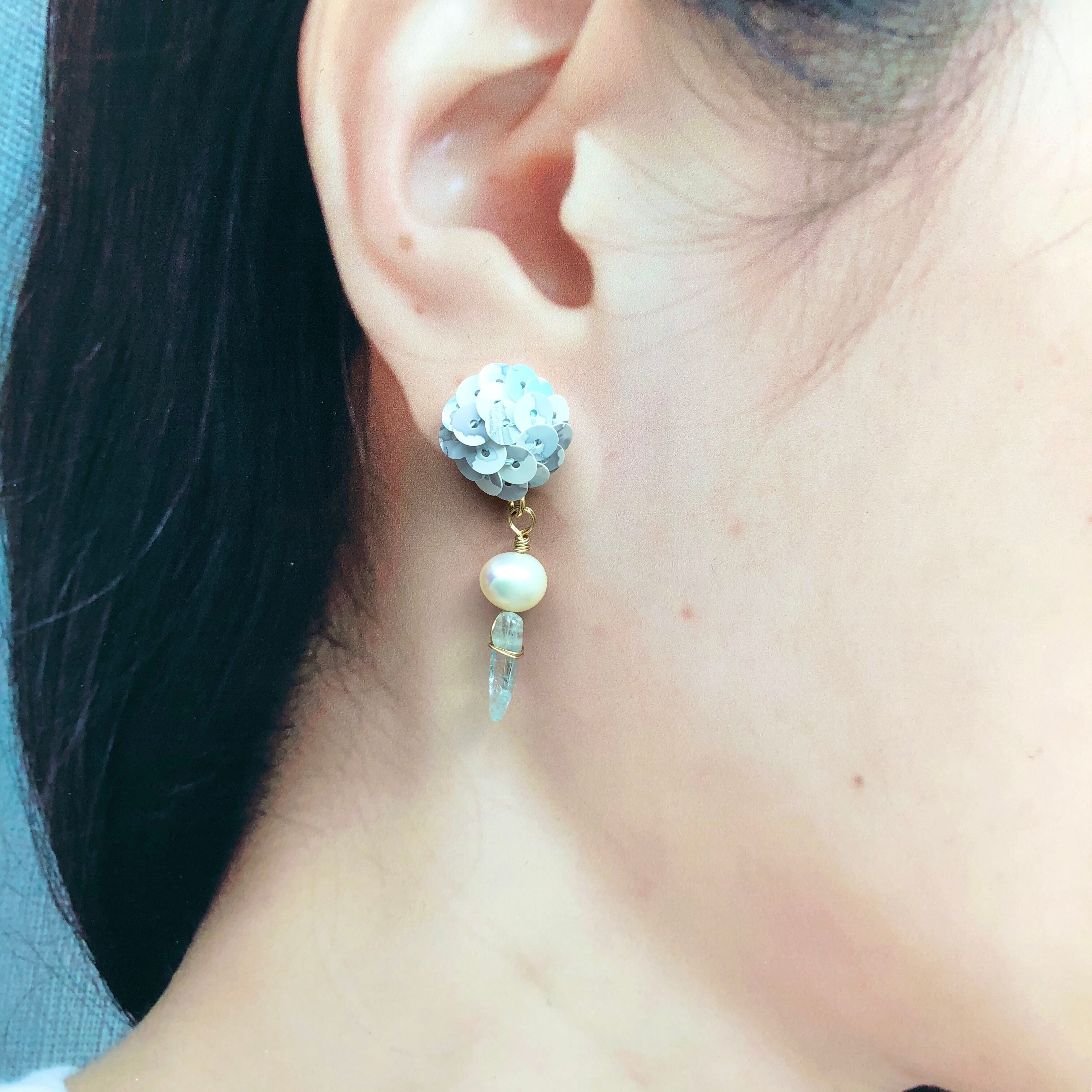 水彩画柄のようなスパンコールをシンプルに刺繍したピアス。
