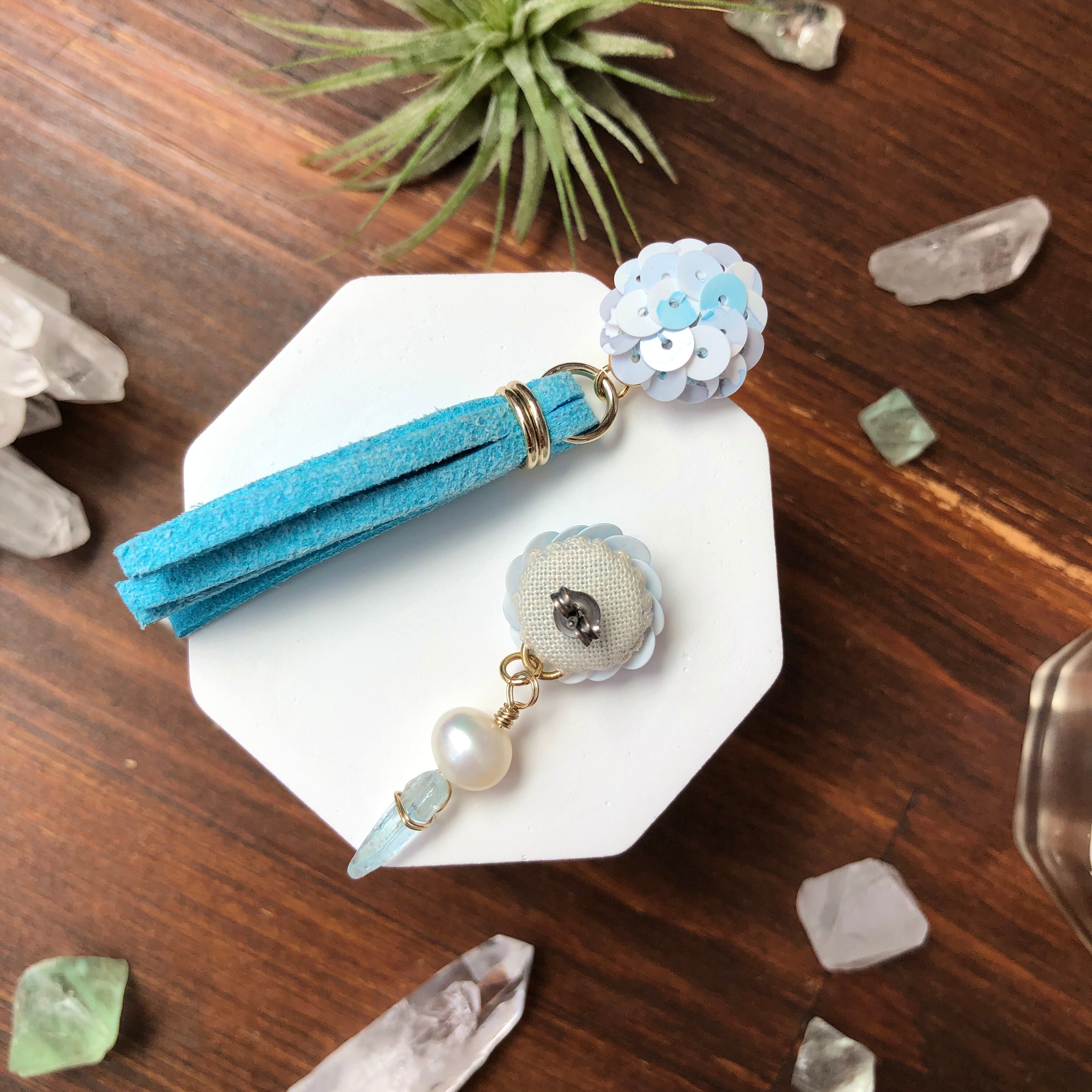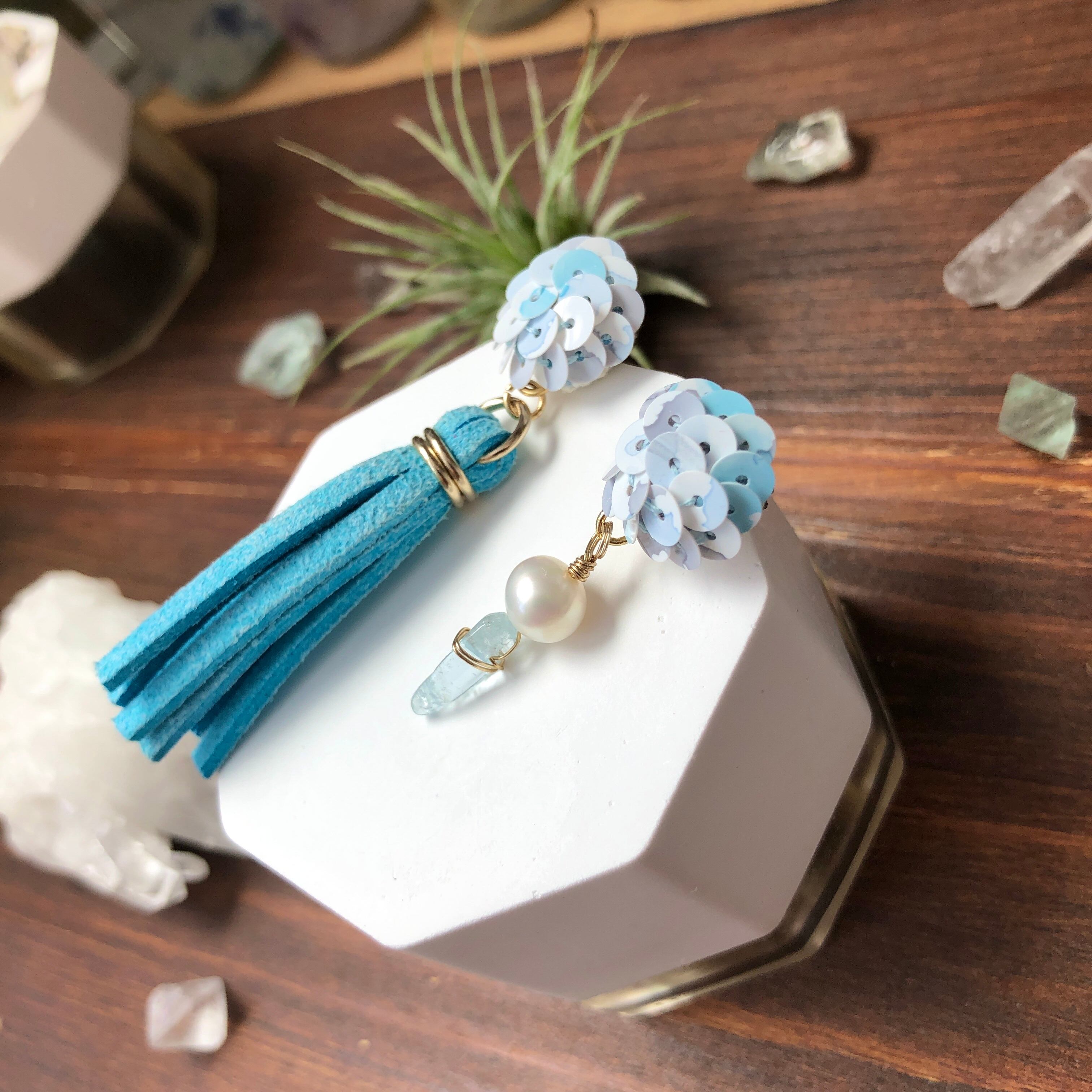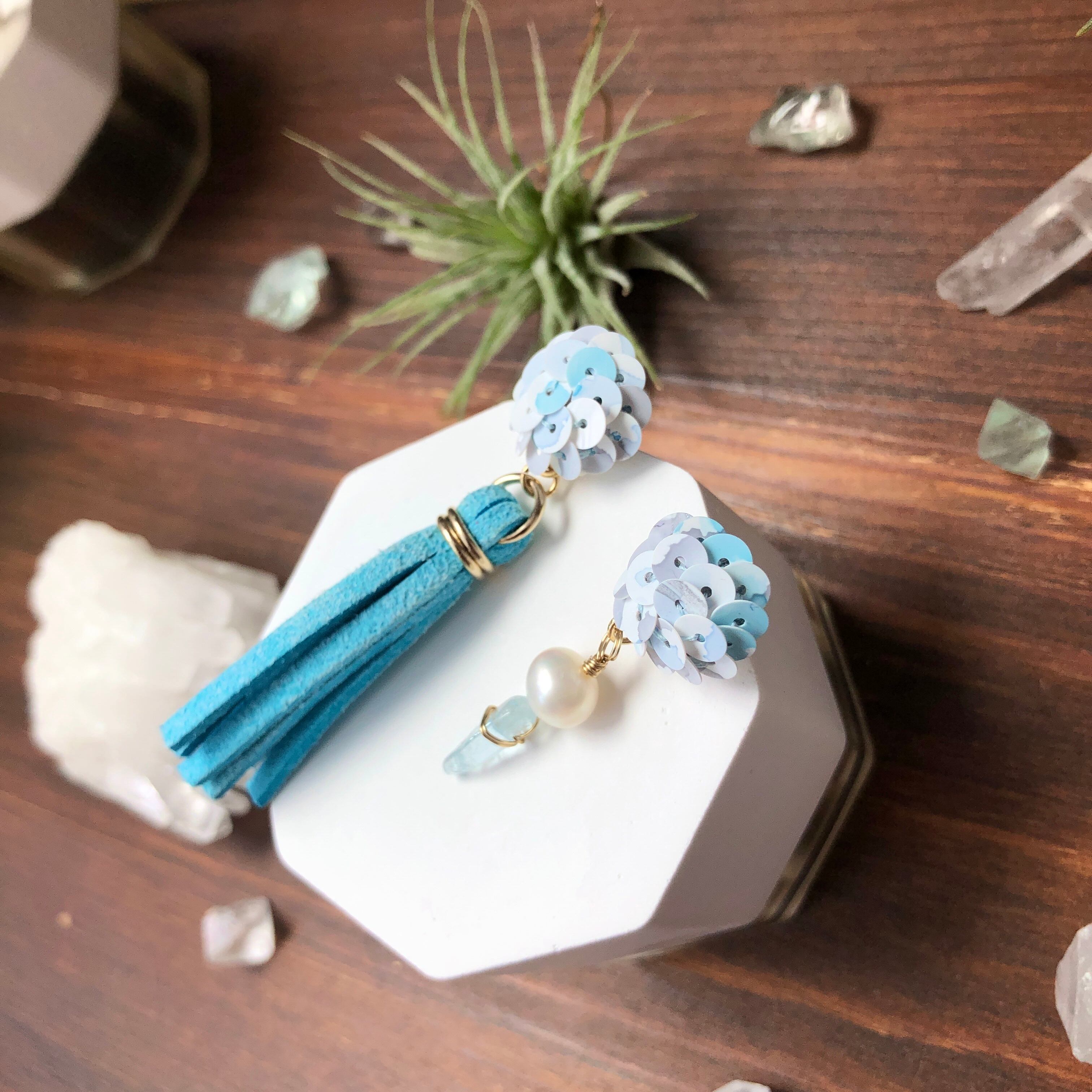 合皮、淡水パール、アクアマリン、チタンピアス、